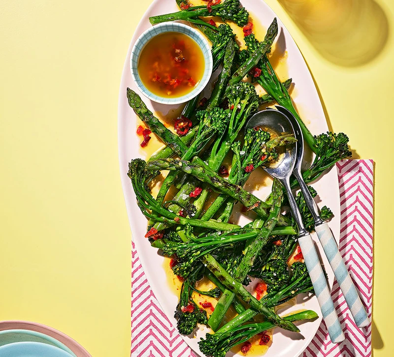 Charred Asparagus & Broccoli with Blistered Chilli Dressing
